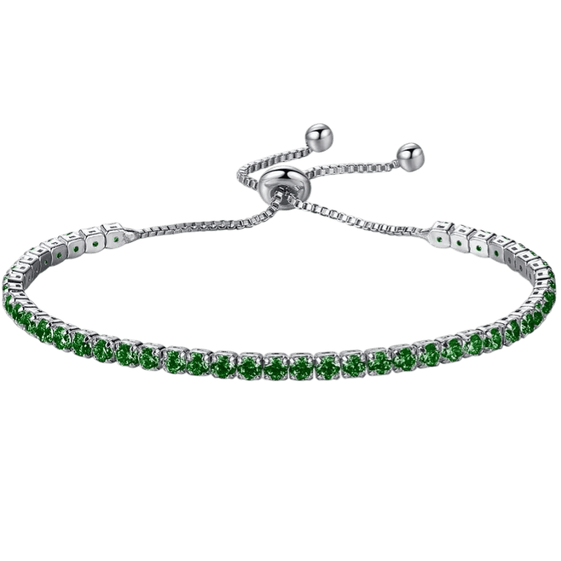 Fresh green CZ stones add a subtle statement to this silver-tone tennis bracelet. Adjustable and lightweight, perfect for daily wear.