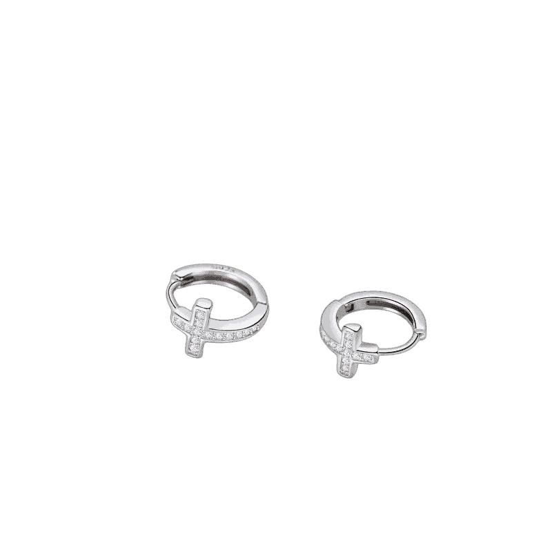 A meaningful design with just the right amount of shine. These hoop earrings feature a pavé cross detail, making them a stylish statement with symbolic charm.