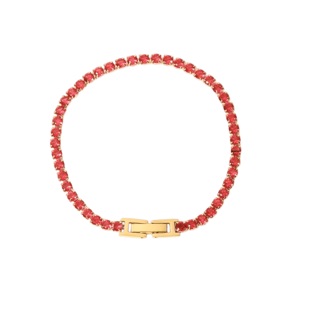 Bold red CZ stones set in a polished gold tone create a striking, elegant look. A standout piece that adds color and confidence to any outfit.