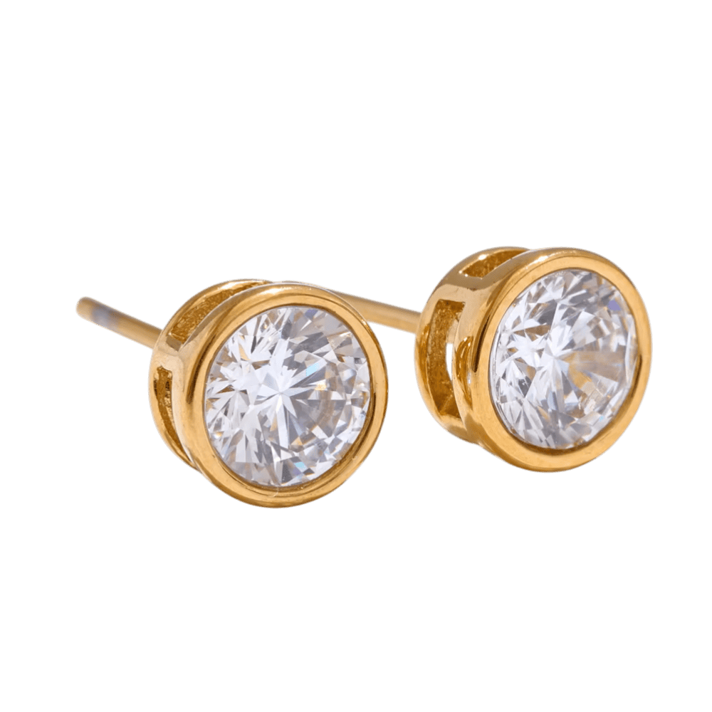 Round CZ Stud Earrings – Gold Tone