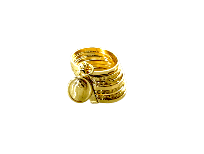 This meaningful semanario ring features the Virgin Mary medallion, symbolizing faith, protection, and devotion. Finished in a warm 14k gold tone, the multi-band design represents the days of the week—making it a thoughtful spiritual piece designed for everyday wear.